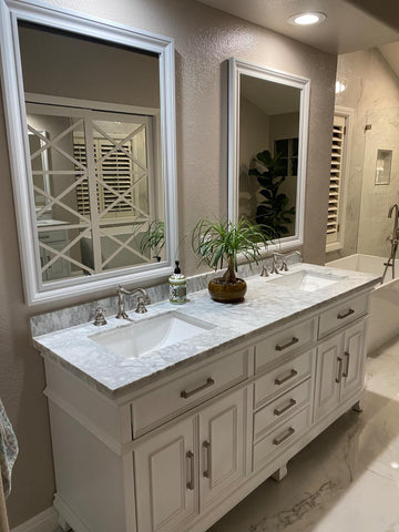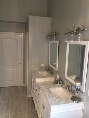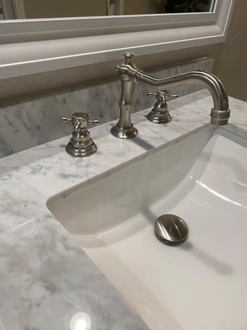 Picture feedback of some retro-style bathroom widespread faucets after installation.