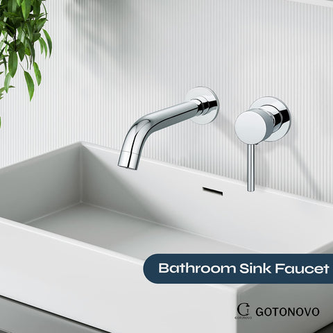 - 【Minimalist Design】:Single Handle Bathroom Faucet for Wall Mount.Gently curved spout suit your washing needs and no-splash water.