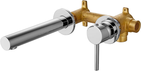 gotonovo Basin Faucet Polished Chrome Single Lever Handle Bathroom Sink Faucet Long Straight Spout with Brass Rough-in Valve Bathroom Mixer Tap Wall Mount