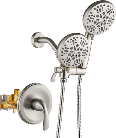 gotonovo Shower Trim Kit High Pressure Dual Brushed Nickel 2 in 1 Shower Head Combo System with ABS Handheld Showerhead and Bathroom Shower System Come With Valve