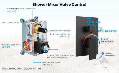 The shower body of Gotonovo is made of high-quality brass and 304 stainless steel shower head. Pressure Balancing Shower Mixer Valve construction ensuring durability and dependabilit.
