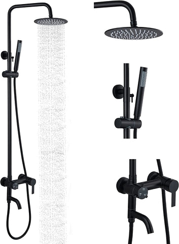 Shower System Set with Hand Sprayer and Tub Spout Stainless Steel Matte Black Cylinder Handle 8 Inch Rainfall Shower Head Bathroom Shower Faucet Fixture Wall Mount Triple Function
