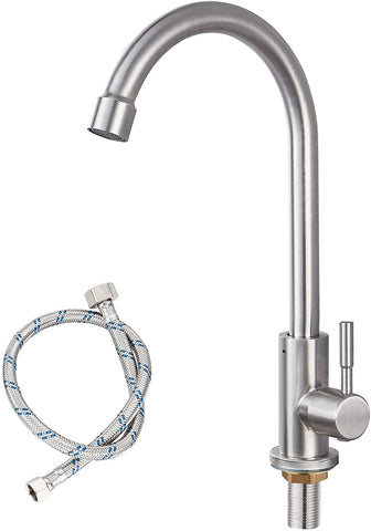 Stainless Steel Cold Water Kitchen Sink Faucet Brushed Nickel Bathroom Single Handle Bar Faucet Faucet Single Temperature Water Only Silver Rotatable
