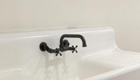Wall Mount Kitchen Faucet Matte Black Double Cross Handle Commercial 3 Inch to 9 Inch Adjustable