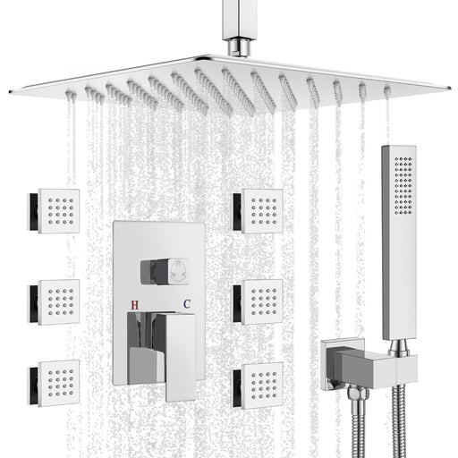 Original price $197.28 - Original price $309.99Original price$197.28 - $309.99$197.28 - $309.99Current price $197.28gotonovo Ceiling Mount Rain Shower Faucet Set with 6 Body Spray Jets Rainfall Shower Head and Handheld Sprayer Multi Shower System Rough-in Valve and Trim Included【HIGH-QUALITY MATERIAL】:Maximum Flow Rate:1.54gpm. 5.82L/min.High quality staineless steel rain shower head,chrome polished finish ensure quality ... View full detailsOriginal price $197.28 - Original price $309.99Original price$197.28 - $309.99$197.28 - $309.99Current price $197.28Save up to 0% Save %