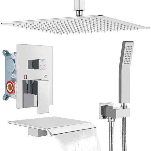 Original price $188.19 - Original price $249.99Original price$188.19$188.19 - $249.99Current price $188.19Gotonovo Rain Mixer Shower Faucet Set with Waterfall Tub Spout 12 inch Square Rainfall Shower Head with Handheld Spray Ceiling Mounted Pressure Balance Rough-in Valve and Trim Included[Quality Commitment]: Made of high-quality materials, with excellent corrosion resistance, ensuring quality and longer durability. Lead-free mater... View full detailsOriginal price $188.19 - Original price $249.99Original price$188.19$188.19 - $249.99Current price $188.19Save 0% Save %