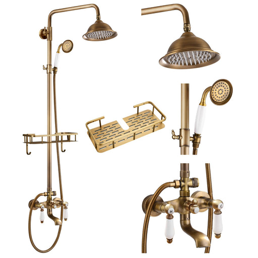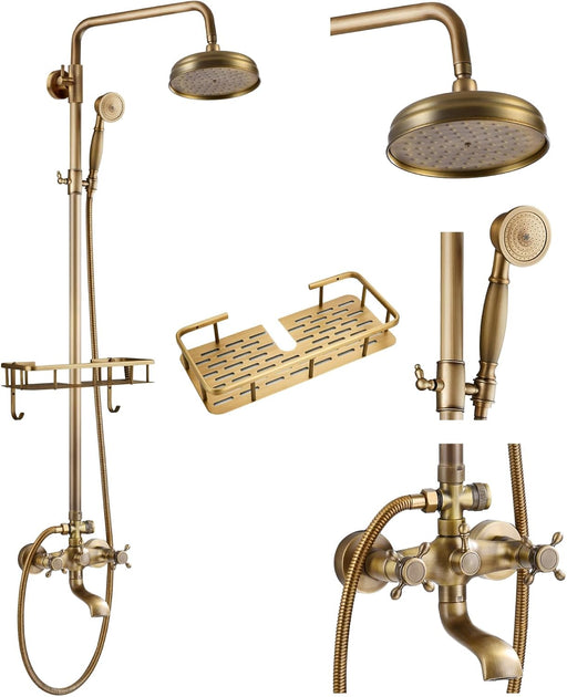 Original price $178.45 - Original price $178.45Original price$178.45$178.45 - $178.45Current price $178.45gotonovo Antique Brass Exposed Bathroom Shower Faucet with Shower Shelf 8 inch Rain Shower Head Wall Mounted Double Lever Handles Shower Shower System with Handheld Sprayer 3 Function with Tub Spout
