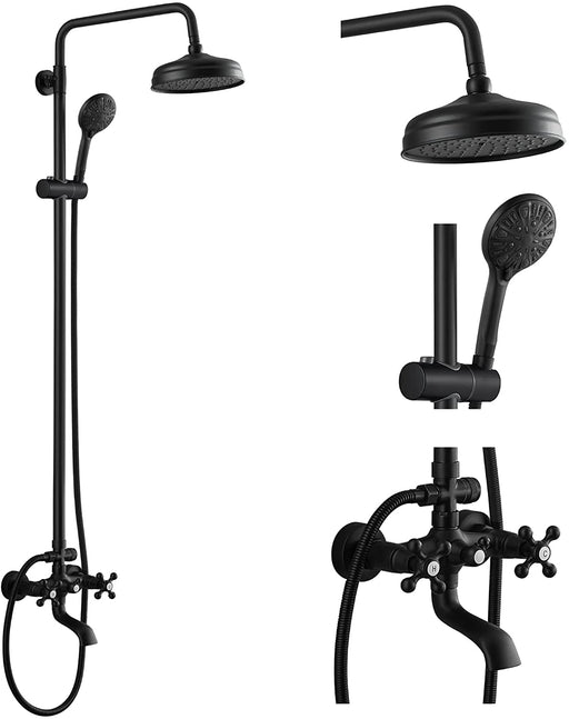 Original price $169.99 - Original price $174.99Original price$169.99 - $174.99$169.99 - $174.99Current price $169.99Gotonovo Exposed Shower System 8 Inch Rainfall Shower Head with Tub Spout and Handheld Spray Dual Cross Handle Bathroom Shower Faucet Wall Mount