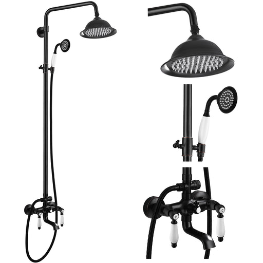 Original price $169.99 - Original price $174.99Original price$169.99 - $174.99$169.99 - $174.99Current price $169.99Gotonovo Exposed Shower System 8-inch Shower Head Fixture with Handheld Spray Double Lever Handle Bathtub Spout Triple Function Bathroom Wall Mount