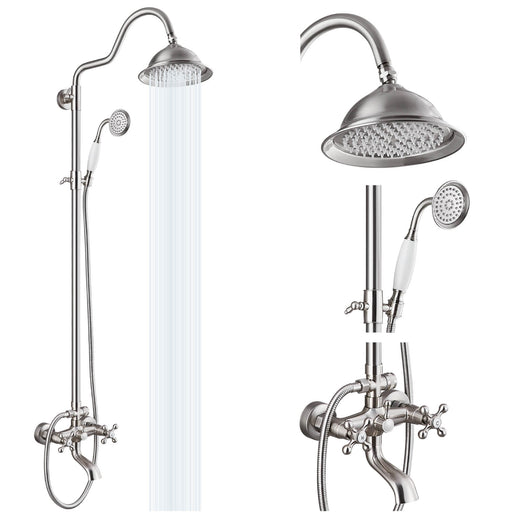 Original price $174.99 - Original price $189.99Original price$174.99 - $189.99$174.99 - $189.99Current price $174.99Gotonovo Exposed Shower System Wall Mounted Triple Function 8 Inch Rainfall Shower Head with Handheld and Tub Spout Double Cross Handles