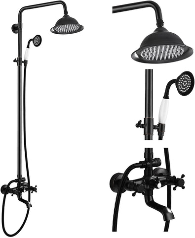 Oliegewreven bronzen douchekraan8 inch regendoucheset met baduitloop Badkamer douchesysteem wandmontage
