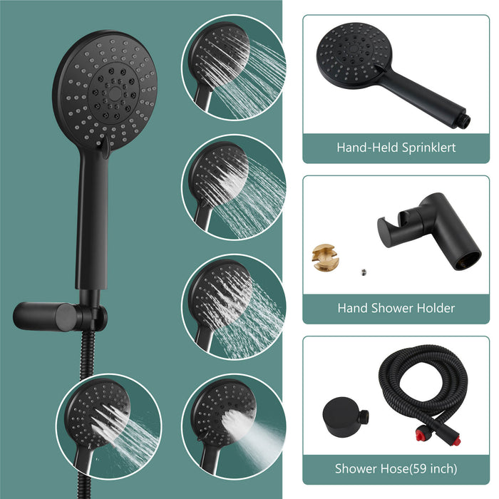 【Special Feature】: Include 8 Inch Round Rainfall Shower Head, Handheld Sprayer, Shower Faucet Valve, Shower Head Arm and 60 Inch Shower Hose.High pressure water brings boosting effect, makes your shower more comfortable and rinses off harmful substances that stick to the skin's surface.
