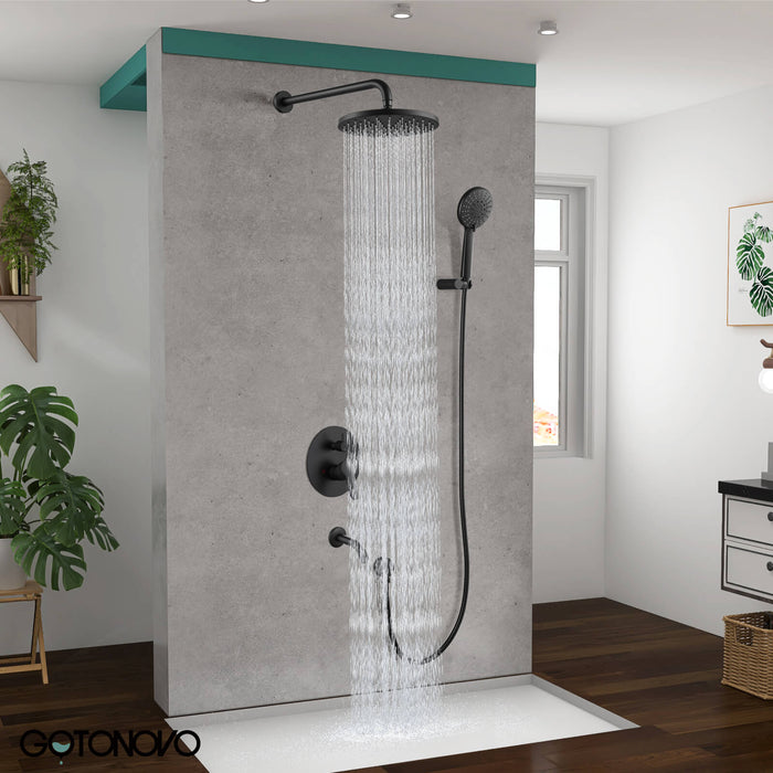 Matte Black Bathroom Shower System 8 Inch Rainfall Showerhead Round Luxury Rain Mixer Shower Combo Set Wall Mounted Shower Fixture High Pressure Shower Faucet Rough-in Valve Body and Trim Included